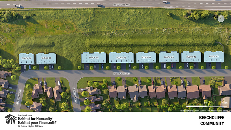 Les 33 maisons en rangée seront situées sur la rue Beechcliffe, à Nepean, Ottawa.